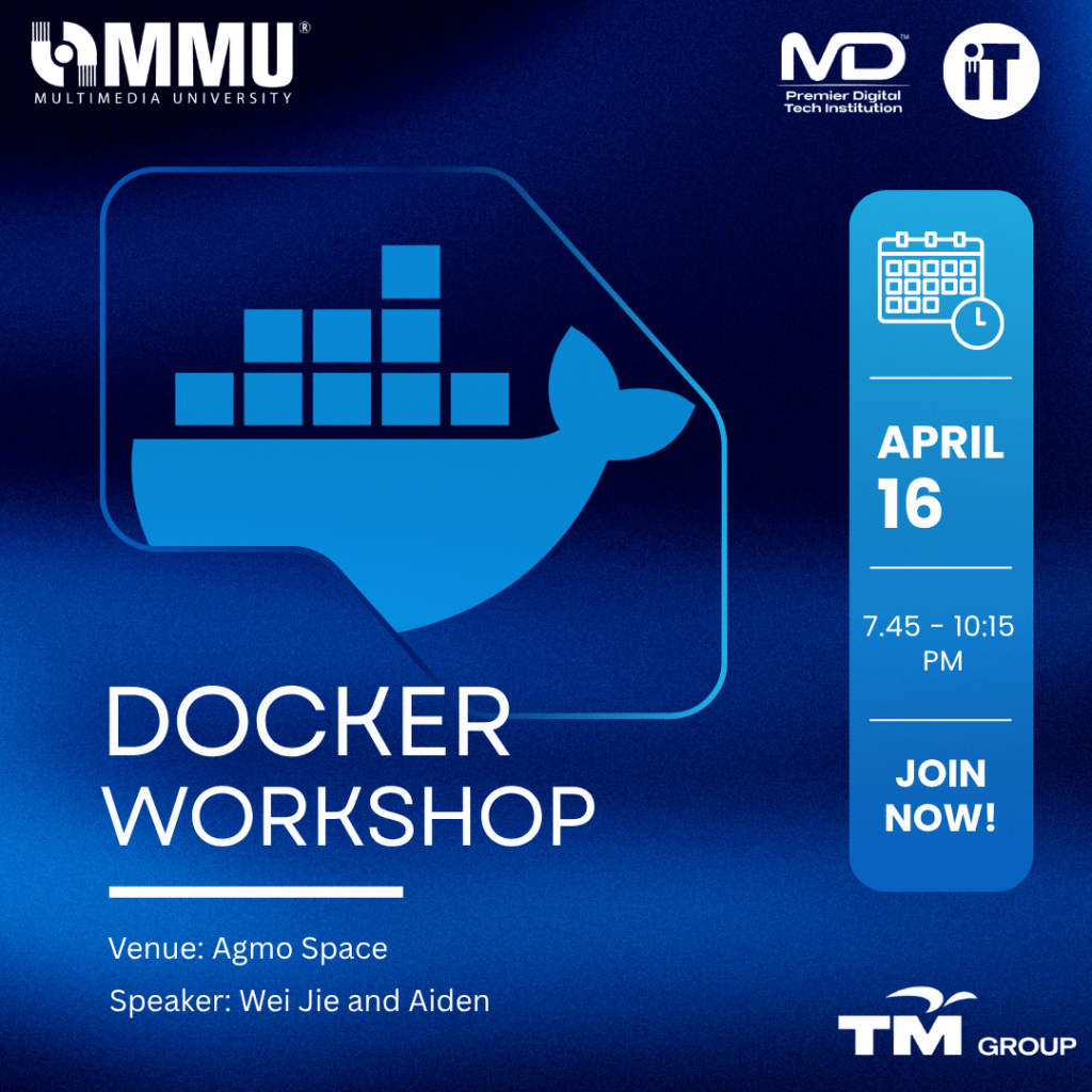 On 16th April 2026, IT Society MMU hosted a Docker Workshop at AGMO Space, bringing together students who were curious about what Docker actually is and why everyone in tech keeps talking about it. Led by Wei Jie and Aiden, the session was designed to make Docker feel less intimidating and more practical.