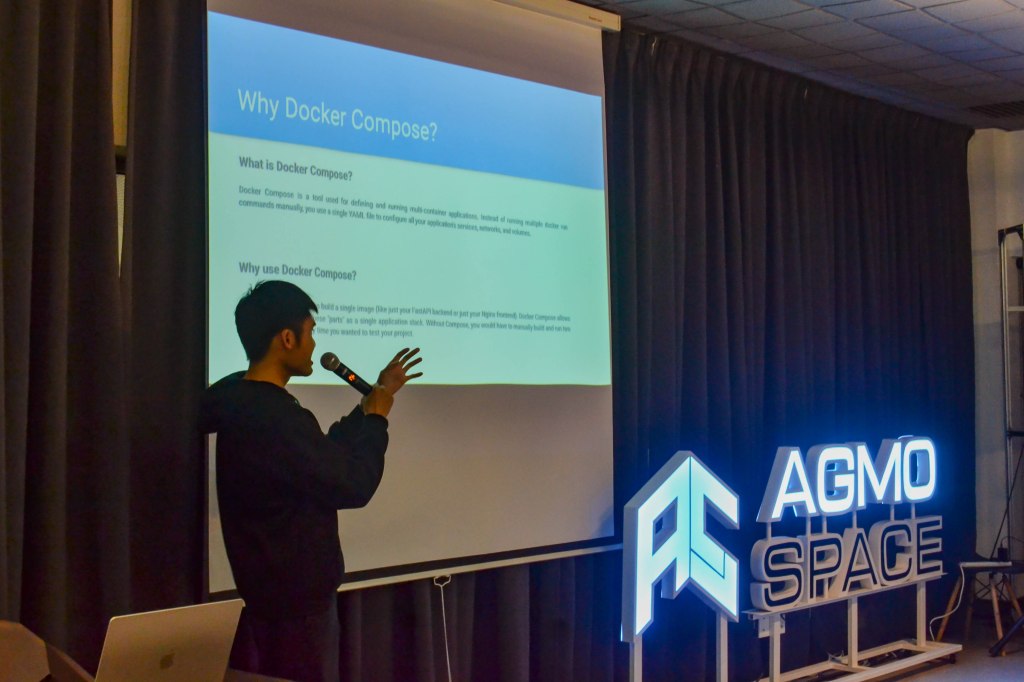 In the second half, Wei Jie introduced Docker Compose and explained how it’s used when working with multiple services. Instead of running everything separately, Docker Compose allows you to manage everything in one place.